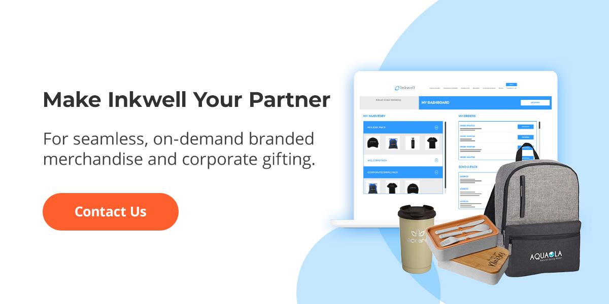 Make Inkwell your partner for seamless, on-demand branded merchandise and corporate gifting — helping you make your rebrand memorable, meaningful and measurable. Contact us today to start designing genuine, thoughtful gifts that make an impact.
